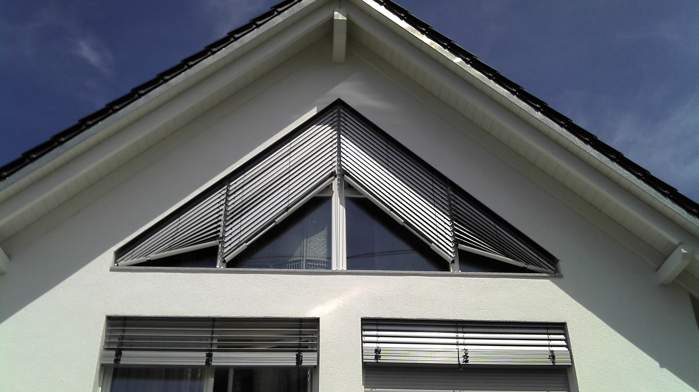 Schrägverschattung sind Sonderanfertigungen für die ungewöhnlichsten Fensterformen. Für den Außen- und Innenbereich können Rollläden, Jalousien, Wendoflex, Markisen, Plissees und Vertikalstores verwendet werden. Die Bedienung ist über Schnur, Kurbel, E-Antrieb oder E-Funkantrieb möglich.